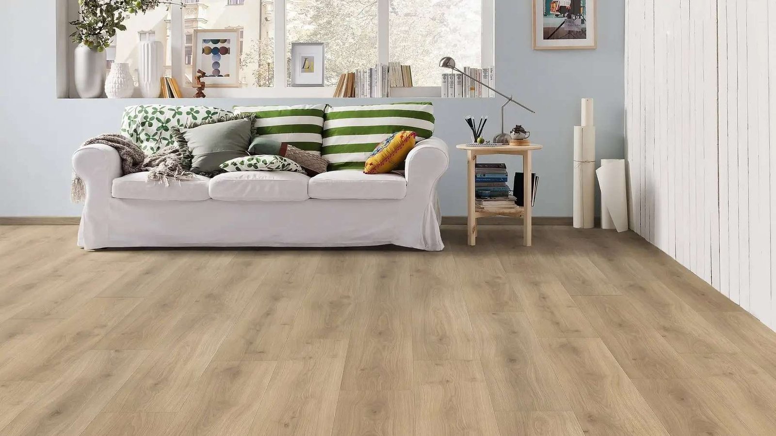 Our German Laminate is a hard-wearing floor covering that can be used in both residential and commercial applications thanks to its use class 23/32. The abrasion class AC4 guarantees high resistance to scratches and wear. The warranty of 20 years in the residential sector and 8 years in the commercial sector speaks for the product’s longevity. With the Top Connect installation connection, the laminate can be installed quickly and easily.